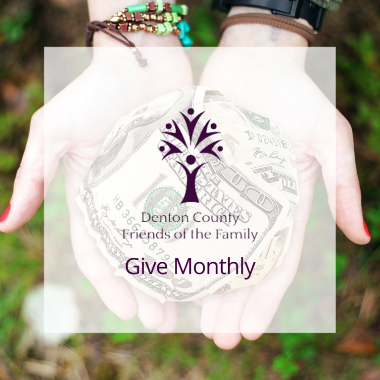 Donate new or unused hygiene items, diapers, feminine care products, bras, underwear, socks, etc., at our Outreach Office located at 4845 S Interstate 35 East, Corinth, TX 76210. Contact Marketing and Development at CommunityRelations@dcfof.org.